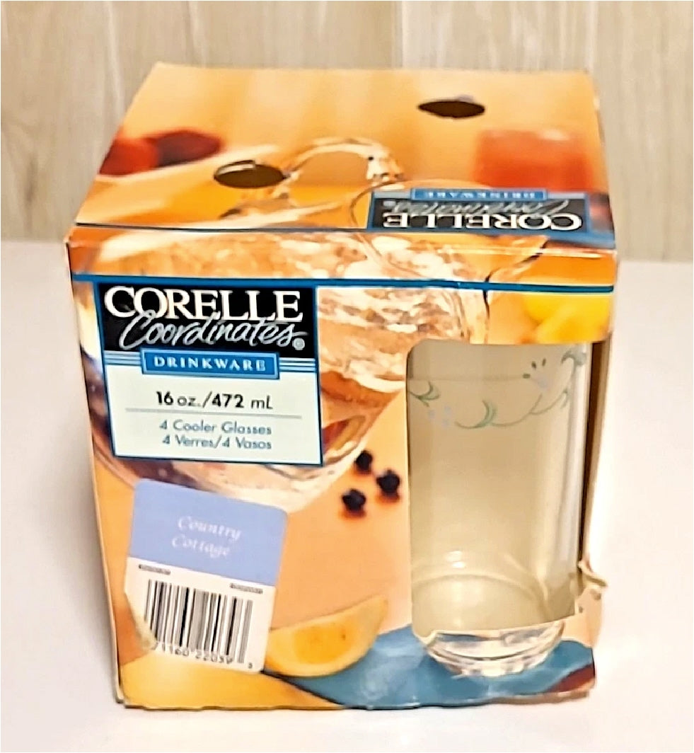 ❤️ 4 Corelle COUNTRY COTTAGE 16-oz GLASSES Straight Sides Cooler Tumblers Hearts Vines