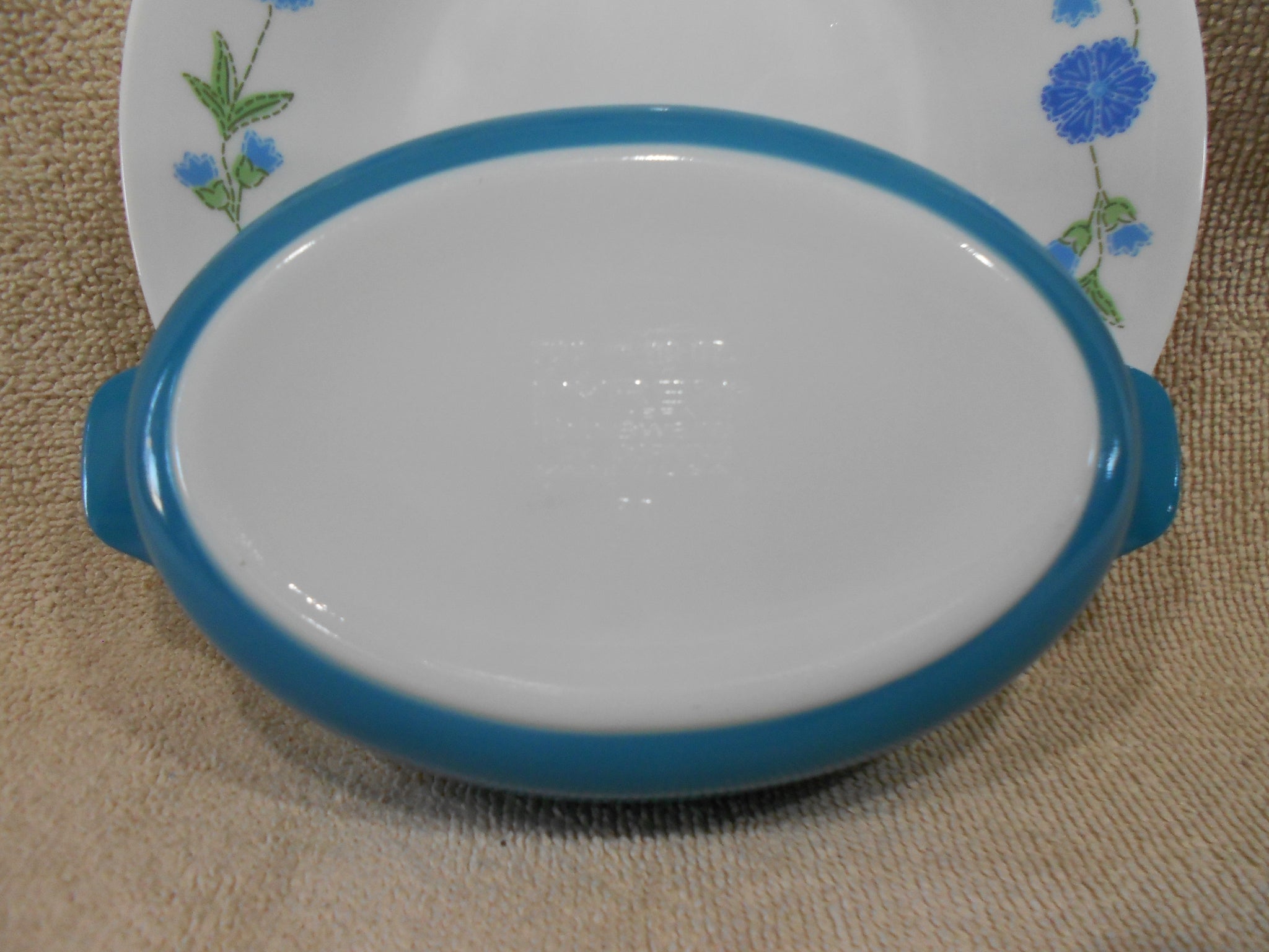 PYREX 10-oz HORIZON BLUE PIXIE 700 ml AuGratin Oval Dish Milkglass Mini Baker