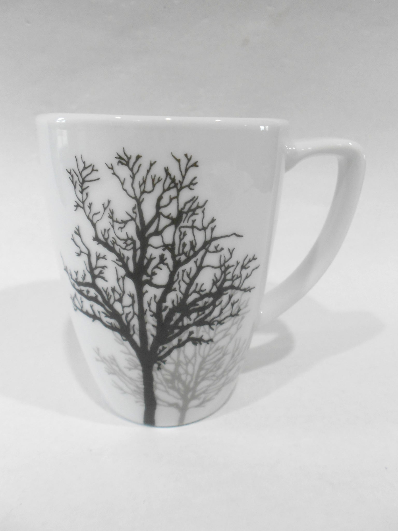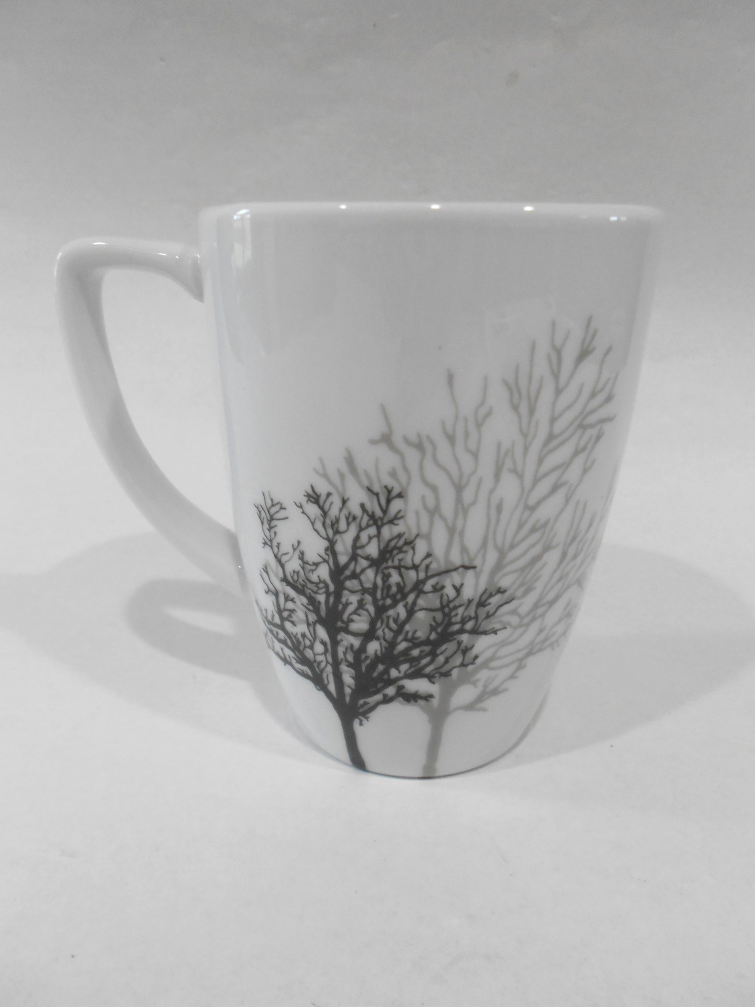 Corelle Square TIMBER SHADOWS 12-oz Porcelain MUG *Black Grey Leafless Branches