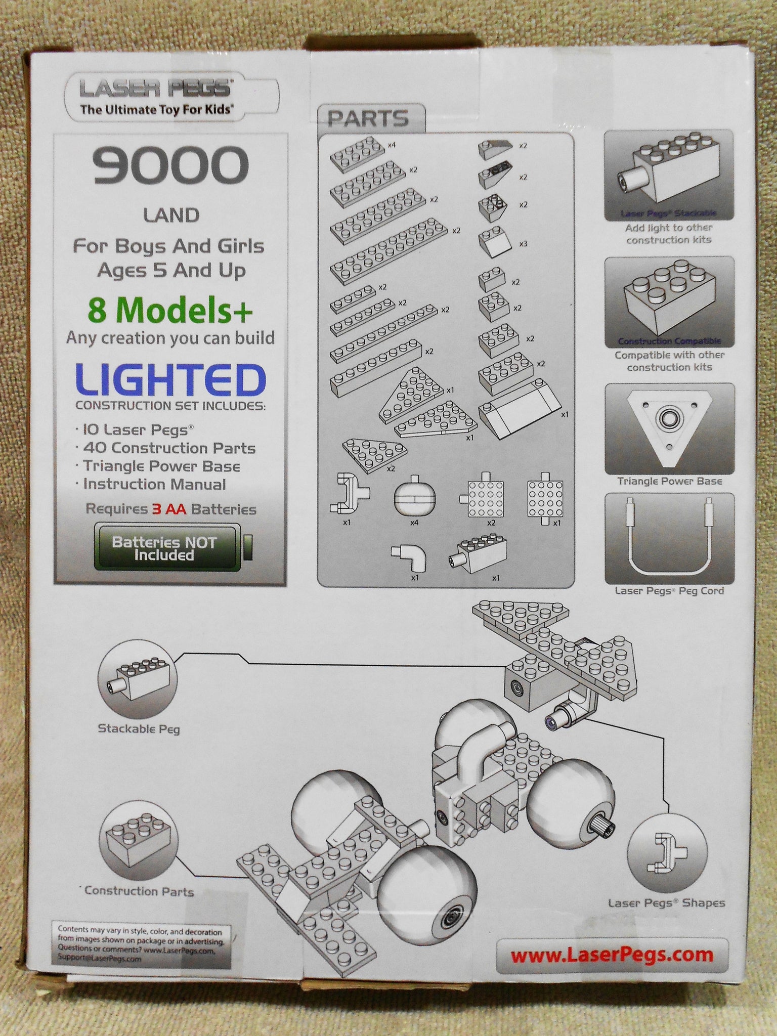 You may start small, scooting around the neighborhood on your Big Wheel, but you dream big. With the Laser Pegs Land Kit you will speed down the track in your Mini Indy Car, race across the plains in your Wind Wagon and even stop once in a while to spy on a Giraffe. This world is huge and there is no time to waste, so take these 10 Laser Pegs and 40 construction parts and get ready to think it, build it and light it up. Ready? Go!